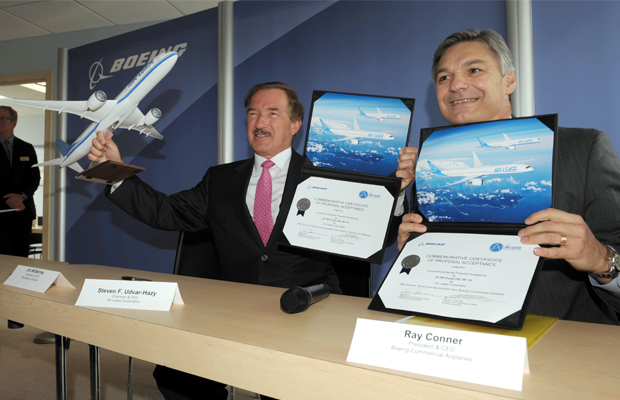 Le PDG d’ALC, Steven Udvar-Hazy, a annoncé une commande de 30 exemplaires de ce futur avion, version agrandie du Dreamliner qui pourra transporter jusqu’à 320 passagers. Le Dreamliner est en concurrence directe avec l’A350 d’Airbus.